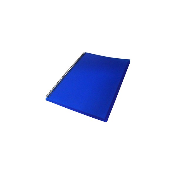 Carpeta con espiral y tapas duras posee 40 fundas de polipropileno ideales para preservar documentos.